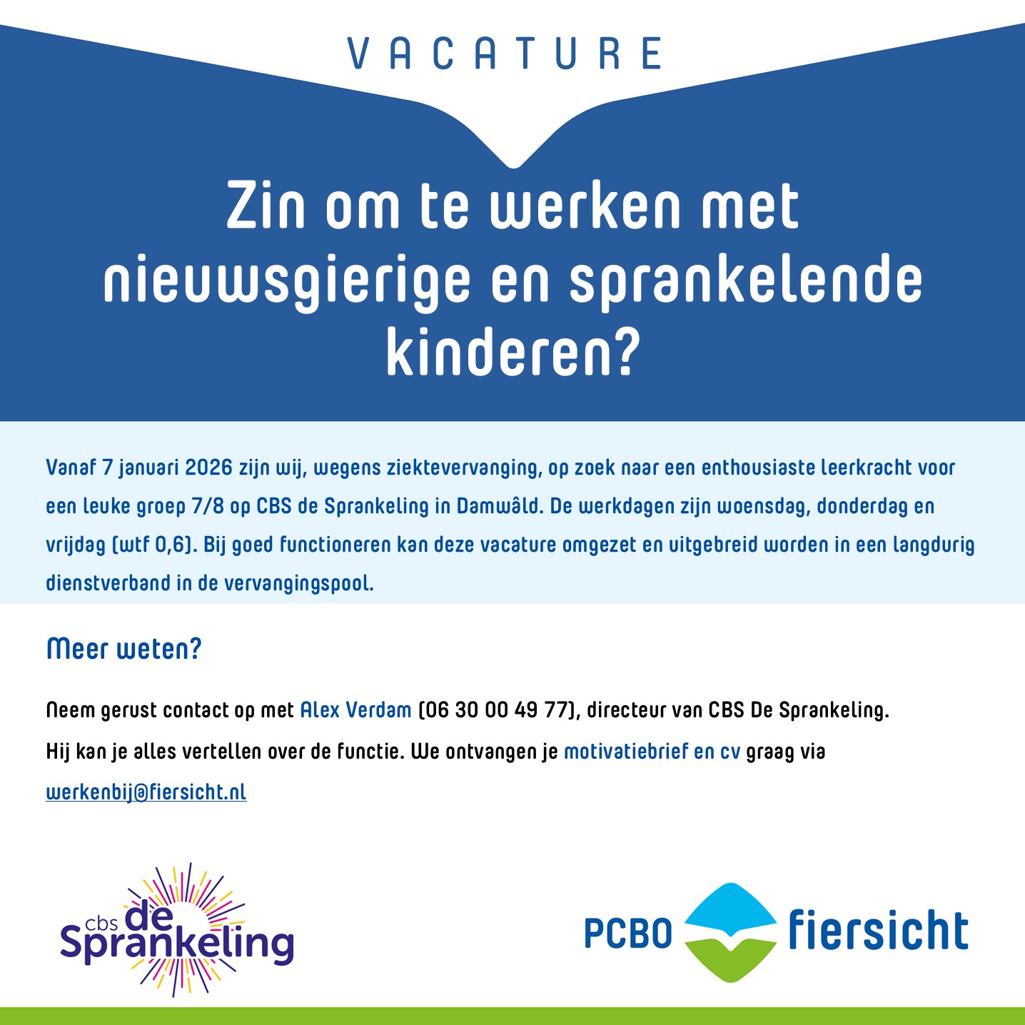 Leerkracht groep 7/8 De Sprankeling (0,6 fte)